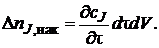 nJ,хр – количество вещества J, израсходованное на химическую реакцию (или образовавшееся в результате ее протекания) в объеме ∆V за время ∆τ; nJ,нак – накопление вещества J в объеме ∆V за время ∆τ (изменение количества вещества J, одновременно содержащегося в объеме ∆V).