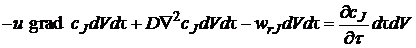Уравнение материального баланса по веществу J учитывает все виды поступления, и расходования этого компонента в пределах элементарного объема ∆V течение промежутка времени ∆τ: