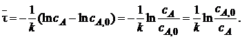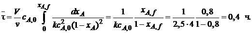 Пример 5.2. Определить среднее время пребывания реагентов в проточном реакторе идеального вытеснения для условий примера 5.1 (реакция второго порядка 2А