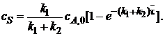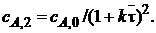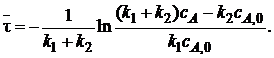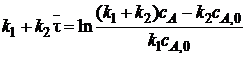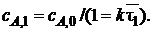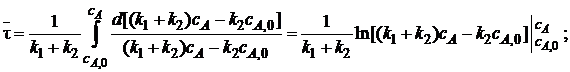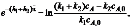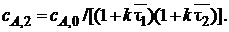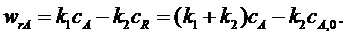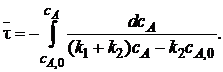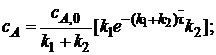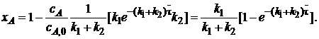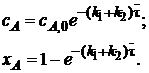 . Для этой реакции скорость по компоненту A wrA = (k1 + k2)cA и выражения для сА и хА будут: