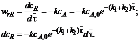 R. Скорость такой реакции wrA = kсAсB. Подставляем это кинетическое уравнение в уравнение материального баланса