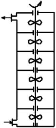 Каскад представляет собой несколько последовательно соединенных проточных реакторов (секций) идеального смешения (рис. 5.9). Реакционная смесь проходит через все секции. Можно рассматривать в качестве примера такой модели не только систему последовательно расположенных отдельных аппаратов, но и проточный реактор, тем или иным образом разделенный внутри на секции, в каждой из которых осуществляется перемешивание реакционной смеси (рис. 5.10). Например, близка к такому типу аппарата тарельчатая барботажная колонна.