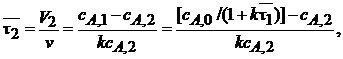 Пример 5.3. Уравнения материального баланса (5.18) и (5.19) могут быть использованы не только для определения среднего времени пребывания и размеров реакционного пространства при заданной глубине химического превращения (проектный расчет). Но и для решения обратной задачи (поверочного расчета) при заданных размерах аппарата для определения реакционного состава на выходе из него.