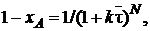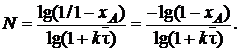 и тогда можно рассчитать число секций заданного объема, необходимых для достижения степени превращения хА:
