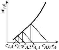 и кривой wr,R(cA) не будет удовлетворять условию сА,1 ≤ сА,0(1 – хА).