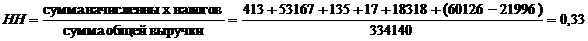 Таким образом, на 1 рубль выручки приходится 33 копейки налогов.