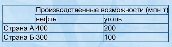 Производственные возможности двух стран даны в таблице (см. рис.).