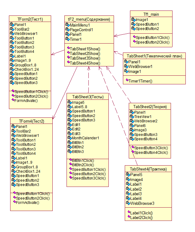 На диаграмме представлены классы, описанные в программе, и взаимосвязи между ними.