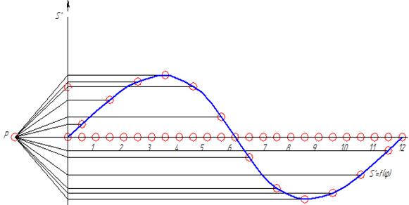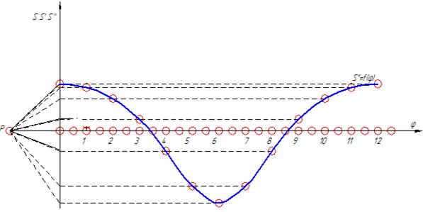 Данный метод основан на применении графического дифференцирования функций положения S(φ), где φ – угол поворота кривошипа.