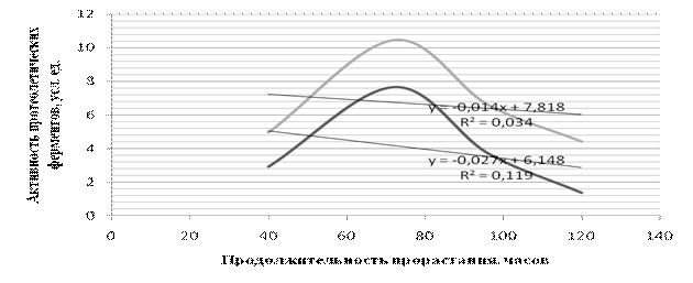 Рисунок 2 - Динамика изменения протеолитической активности пророщенных семян подсолнечника