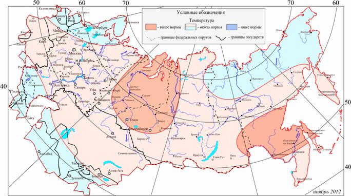 Холоднее, чем в октябре 2011 года предполагается в северной половине европейской территории России, на большей части Красноярского края, на западе Якутии и севере Иркутской области.