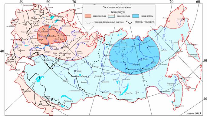 На территории Западной Сибири средняя температура воздуха ожидается ниже, чем в марте 2012 года (70-75%).