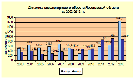 В 2013 году можно отметить значительное увеличение объемов торговли экспорта по странам дальнего зарубежья, в связи с чем общий объем товарооборота области вырос на 62%.