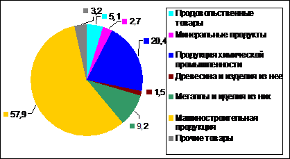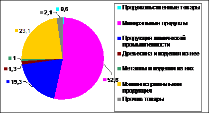 Товарная структура экспорта в 2013 году изменилась в части значительного роста поставок нефтепродуктов (27 группа товаров), объемы которых составили 52,6 % от общего объема экспорта. Традиционно значительна в общем стоимостном объеме экспорта области продукции доля химической промышленности – 19,3 % и машиностроительной продукции – 23,1 %.