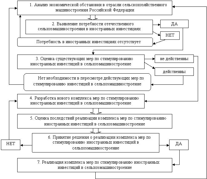 Рис. 3. Алгоритм формирования комплекса мер по таможенному стимулированию иностранных инвестиций в сельскохозяйственное машиностроение России