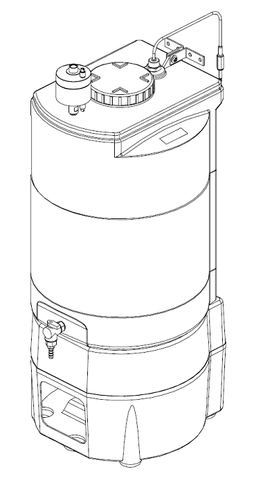 Заполнить бак водой из системы водоочистки. Отсоединить источник воды от бака путем закупоривания соединительного переходника питающей трубки с помощью заглушки. Добавить реактив для достижения концентрации 100 мг/л в баке.Например, при использовании 11.4% раствора гипохлорита натрия: