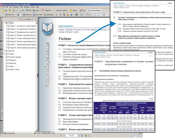 · Теоретическая часть представлена в электронном учебнике по энергосбережению. Эта часть комплекса состоит из восьми разделов, в которых выделены главы и параграфы. Главы заканчиваются вопросами для самопроверки.