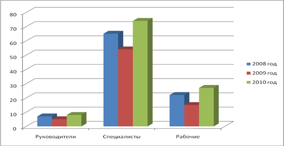 За период с 2008 по 2009 года мы наблюдаем снижение по категориям персонала: