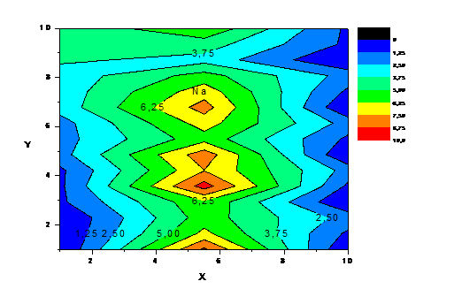 Было показано распределение микроэлементов вокруг опухолевой клетки. Выбраны средние величины, независимо от инвазии опухоли. Установлено прогностическое значение Na и Mg вокруг опухолевых клеток, согласно уменьшению их количества в отдалении от опухолевой клетки (рис. 7).