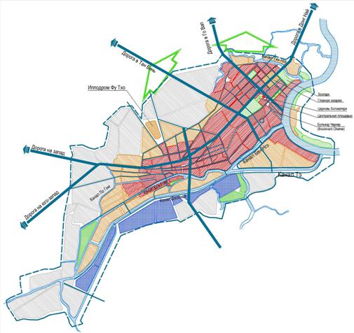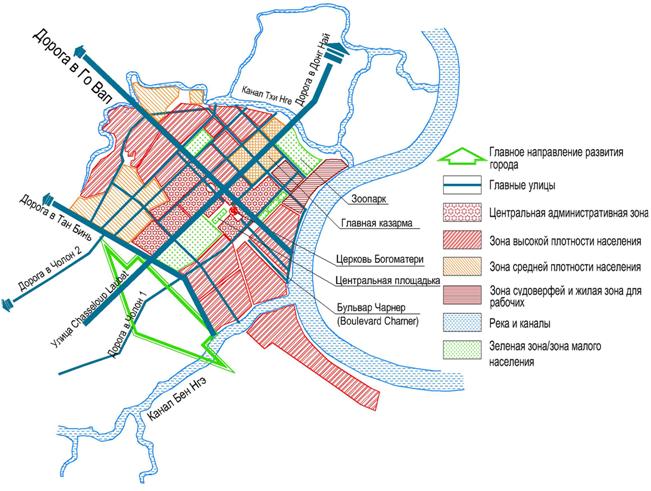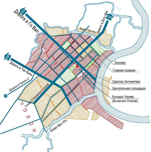 4. В процессе развития плана Сайгона всегда существовали два важных градостроительных ядра – Сайгон и Чолон. Эта структура сохраняется до настоящего времени для города Хошимина. История развития коммерческой зоны Сайгон – Чолон не только создала главные направления для градостроительного пути, но и придала Сайгону свой колорит, который совершенно отличается от Ханоя и от других городов Вьетнама;
