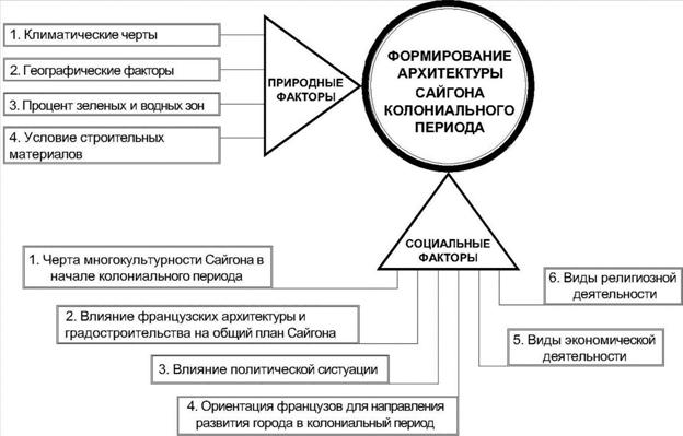 см. Схема 1 – Факторы, влиявшие на архитектуру Сайгона колониального периода (стр. 25).