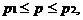 где p1, p2 - верхняя и нижняя границы интервала, определяемые по формуле: