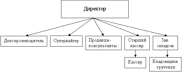 Производственно- техническая деятельность магазина, его права и обязанности регулируется законом о предпринимательской деятельности. Управление осуществляется в соответствии с уставом ЗАО «Тандер». Предприятие является юридическим лицом, пользуется соответствующими правами и выполняет обязанности, связанные с его деятельностью. возглавляет генеральный директор сети магазинов «Магнит» - , который организует всю работу предприятия и несет полную ответственность за его состояние и деятельность перед акционерами и трудовым коллективом. Генеральный директор представляет предприятие во всех учреждениях и организациях, распоряжается имуществом предприятия, заключает договора, издает приказы по предприятию, в соответствии с трудовым законодательством принимает и увольняет работников, применяет меры поощрения, налагает взыскания на работников предприятия, открывает в банках счета предприятия. При существующей структуре управления руководителю предприятия непосредственно подчиняются: директор по закупам; директор по развитию; директор по ревизионной и юридической работе; директор по маркетингу; финансовый директор; директор по управлению кадрами.