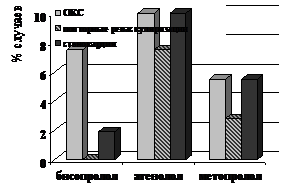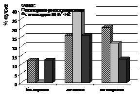 Основным видом оперативного вмешательства у пациентов обеих групп было КШ в условиях ИК. Большинству пациентов была проведена ПР миокарда (в группе периндоприла в 77,8%, в группе эналаприла – в 78,6%, в группе лизиноприла – в 77,5% случаев). У 11 больных в группе периндоприла, у 6 - в группе эналаприла и у 5 – в группе лизиноприла, КШ сочеталось с ГРЛЖ.