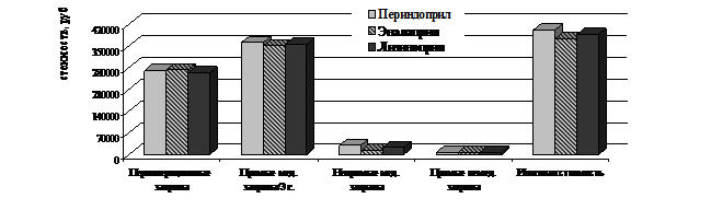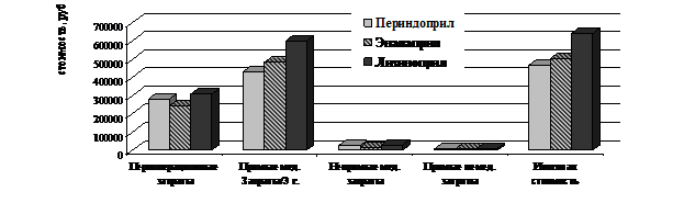В периоперационном периоде в группе периндоприла отмечалось увеличение положительных результатов в сравнении с группой эналаприла на 14,3% при увеличении общих затрат на 38.539,8 руб.; в сравнении с группой лизиноприла - увеличение положительных результатов на 9,9% при снижении общих затрат на 26.817,8 руб. Через 3 года наблюдения в группе периндоприла - увеличение положительных результатов в сравнении с группой эналаприла на 35,5% при снижении общих затрат на 37.908,6руб.; в сравнении с группой лизиноприла - увеличение положительных результатов на 52,9% при снижении общих затрат на 172.057,8 руб.
