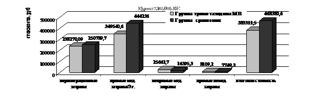 Рисунок 21. Средние затраты у больных ИБС, подвергшихся КШ в группе триметазидина МВ и в группе сравнения за весь период наблюдения
