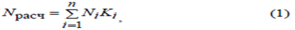 Nрасч. – перспективная суточная интенсивность i-го типа автомобилей в составе транспортного потока приведенного к легковому автомобилю, прив. авто/сут;