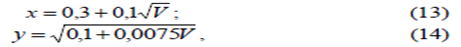 Значения x и y на основе экспериментальных исследований определяются по эмпирическим формулам