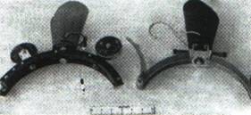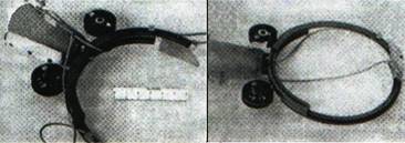 Фото 6. БТС с дрессированными морскими животными для подъёма затонувших образцов В и ВТ: а) учебные механические захваты для подъёма затонувших образцов В и ВТ; б) рабочий захват во взведённом состоянии; в) сработавший рабочий захват; г) морской лев закрепляет буксировочный трос на затонувшей авиационной мишени BQМ-74Е; д) гринда при помощи закреплённого на роструме захвата может поднять затонувший предмет весом до 30 кг с глубины до 500 метров. | ||