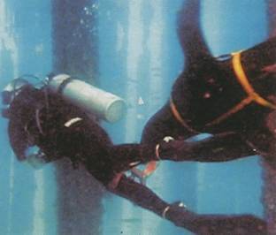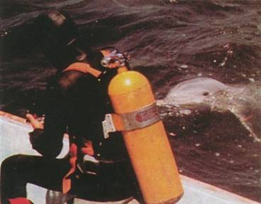 Дельфины обучены быстро подплывать к диверсанту со спины и производить атаку пловца, ударяя его специальным поражающим устройством, за-крепленным с помощью намордника на роструме[6]. В качестве такого устройства могут использоваться: