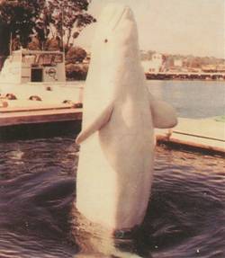 Фото 1. Центр подготовки дрессированных морских животных в районе Сан-Диего: а) тренер в легководолазном снаряжении с дрессированной афалиной; б) белуха обладает эффективным аппаратом биоэхолокации и может использоваться в районах, покрытых льдом. |