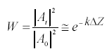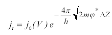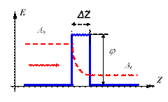 где A0 - амплитуда волновой функции электрона, движущегося к барьеру; At - амплитуда волновой функции электрона, прошедшего сквозь барьер; k – константа затухания волновой функции в области, соответствующей потенциальному барьеру; Z - ширина барьера.