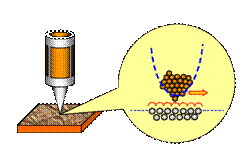 2. Возможна работа в режиме постоянной высоты и тока для гладких поверхностей. В случае работы на неровных поверхностях будет происходить смещение выступов на один атом.