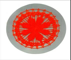 3. Нитку закрепить в центре, ею перекрестить все нитки и выполнить «паучок». Чтобы нить не накладывалась на одни и те же нитки, в конце каждого круга (круга одного и того же луча), сделать поворот и ввести нитку в обратном направлении. Рабочую нитку можно пропускать не только через пары ниток, из которых состоят лучи, но и через каждую нитку.