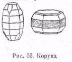 Определение. Корунд определяется по боченковидиой форме кристаллов или по призматическим кристаллам со слабо развитой бипирамидой и ромбоэдром. Реже наблюдаются базальные пластинки. Характерна исключительно высокая твердость. Определяется также по серовато-синеватой окраске и стеклянному блеску. Проверяется под микроскопом в иммерсионных жидкостях по оптическим свойствам и химически на алюминий. Химически инертен, не растворим в кислотах и щелочах и с трудом сплавляется с бурой и фосфорной солью в прозрачное стекло.