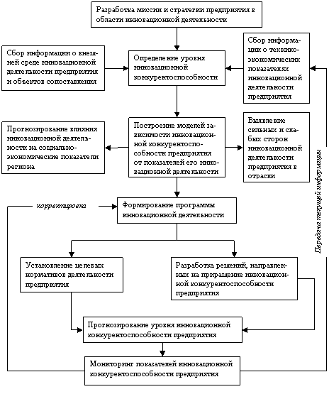 Контроль за состоянием и динамикой основных показателей и факторов инновационной конкурентоспособности осуществляется на основе эффективной системы мониторинга инновационной конкурентоспособности предприятия. Такая система позволяет оперативно и качественно управлять не только его инновационной деятельностью, но также оказывает широкое мультипликативное воздействие на целый комплекс социально-экономических показателей и процессов, в частности, позволяет осуществлять и выбор оптимального соотношения между внутренними и внешними инновациями и корректировать его при различных изменения внешней и внутренней среды.