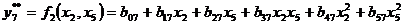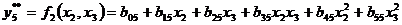 Уравнения регрессии, полученные таким образом, обозначим yk* = f1(xi, xj) – обучающая система уравнений, yk** = f2(xi, xj) – проверочная система уравнений, где k изменяется от 1 до 10. Тогда для первого ряда селекции имеем (s=C25=10) систему из десяти уравнений (обучающая последовательность):