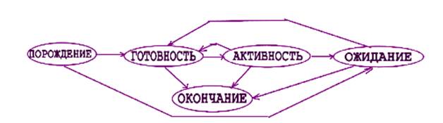 Процесс, как любая деятельность по исполнению программы на процессоре, нуждается в управлении, которое заключается в переводе его из одного состояния в другое (рис.2):