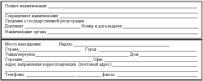 Форма 3 – анкета зарегистрированного лица (юридического лица)