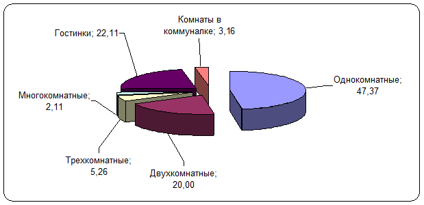 Структура спроса отображена на диаграмме 19. Лидируют по уровню спроса в найм однокомнатные квартиры – 47,37% потенциальных нанимателей жилья интересуются «однушками».