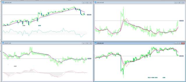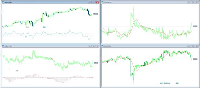 Настроить четыре окна торгового терминала, отображающие изменение цены основных валютных пар, следующим образом: