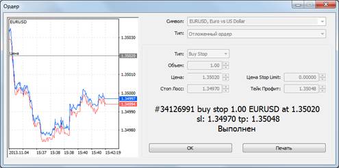 Работа с ордерами в информационно-торговой системе. Открытие позиции и установка отложенных ордеров»