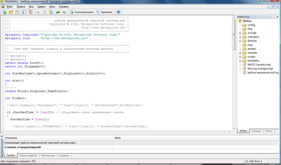 Подключить программу, моделирующую работу механической торговой системы (МТС) – lab4.mq4