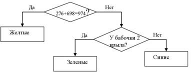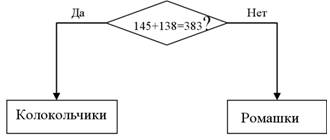 Буратино подарил Мальвине букет цветов. Из каких цветов был составлен букет ты узнаешь, если выполнишь представленный на рисунке алгоритм
