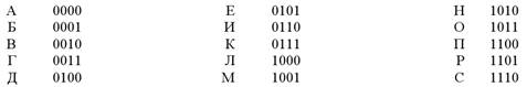 Посмотри на таблицу кодировок некоторых букв русского алфавита и расшифруй слово, представленное в двоичных кодах. Что означает зашифрованное слово?
