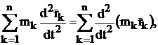 Это уравнение выражает теорему о движении центра масс механической системы, а сравнение выражений (10) и (13) позволяет сформулировать теорему: центр масс механической системы движется как материальная точка, в которой сосредоточена вся масса механической системы и к которой приложены все внешние силы, действующие на систему.